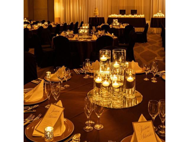 【披露宴の盛り上がりを体感!】8mの天井高を活かしたムービングライトやLED照明の演出、バブルやスノーなど会場の特徴を生かした演出を体験!期待感や楽しげな雰囲気から、エンドロールの映像に感動することも