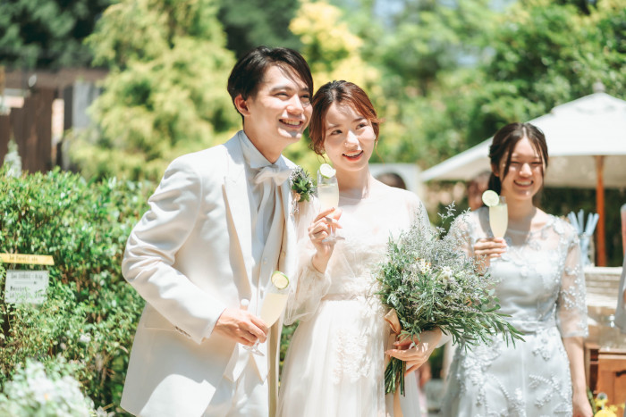 ・チャペルは使わずにガーデンでの挙式を行いました。・ガーデンはシンボルツリーがあり、その前に新郎新婦が立ちます。親族がベンチに座り、その他のゲストは立ってもらいました。暖かな陽気の中行うことができて、青空がとても映える挙式となりました。・チャペルはキリスト式、人前式どちらでも行うことができるそうです。小さなステンドグラスがカラフルに輝き、可愛らしい雰囲気です。60人ほどであればベンチに座ることができるそうです。・木の温かみと大きな窓から見える緑の相性が白を基調とした会場にぴったりです。・広々とした空間で、60人が入っていても問題ありません。・入場の方法は、メインの窓(バックバルーンや愛車、愛バイクの使用も可能)・バルコニー・キッチンカーテンの影を生かした演出などたくさんあります。・ドレスはどれも私には着こなせずに持ち込みをしました。持ち込み料も1着5万円ほどかかり、ウェディングドレスとカラードレスとなればプラス10万円です。こだわった部分でもあり、想定していなかった出費でもあり、持ち込みによる値上がりでもあります。・ペーパーアイテム・ウェルカムスペース系は持ち込み料もかからないとのことで作りました。・往復バスもプレゼントしてもらえました。・cdも無料で貸していただき、買い集める必要がなかったので、負担も減り助かりました。・当日はあまり食べられませんでしたが、見学時と試食会ではお肉料理やお魚料理などたくさんの種類を食べました。6コースくらいから選べたと思います。・ガーデンでのデザートブッフェができました。甘いものだけでなくしょっぱい系のリクエストにも応えてくださりました。・高速道路の出口から車で5分くらいです。・近くにマックがあります。・敷地内に入ってしまえば、見えることはないので、非日常感を味わうことができます。・少し言いにくいことでも真摯に受け止めてくださり、話しやすかったです。・お上品なおもてなしというよりもアットホームな柔らかい気持ちで感謝をゲストに伝えたいと思っていた私たちだったので、スタッフさんはとても重要でした。ここで結婚式を挙がたいと思った決め手です。・スタッフさんが明るく笑顔で対応してくれる・ガーデン挙式もチャペル挙式もできる・広々とした披露宴会場・貸し切りのゲストハウス・おすすめポイントが絞れないところ・スタッフさんの雰囲気はしっかりと見た方がいいと思います。自分たちの作りたい空間のイメージが共有できるか見定めましょう!・当日だからといって特別なことをする必要はないと思います。いつも通りの自分を表現する、そんな準備をしてほしいです。・ダイエットの敵はリバウンドです。詳細を見る (1111文字)