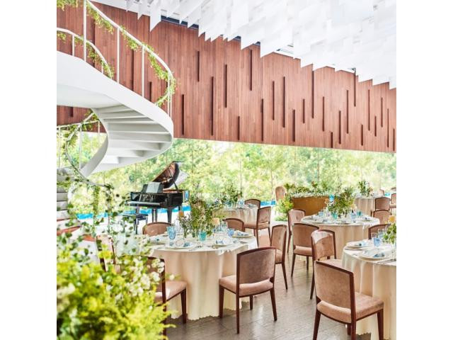 | ガーデン演出 | 有り◆パーティ会場は一面緑のパノラマとウォーターテラスに囲まれ、まるで高原リゾート◆窓をフルオープンにすれば、風も感じる爽やかなパーティに ◆テラスからの入場は、フォトジェニックなワンシーンに |