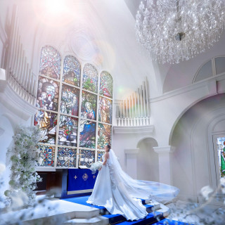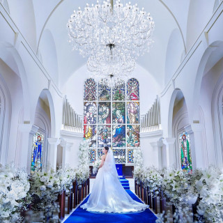ウェディングドレスが最も美しく映えるロイヤルブルーのバージンロード。