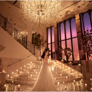 街中の豪華なステンドグラスの式場と美しい会場で特別なひととき
