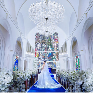 青いバージンロードにドレスが映えて綺麗に写真が撮れました。暖かい色合いの雰囲気で、天井も広くて居心地がよかったです。音響選びや演出選びなどにお金をかけました。ペーパーアイテム、プチギフト、ムービー作成ブーケ・ブートニア、トスブーケ、両親への花束メニューも豊富でどれもおいしく食べられました。デザートブュッフェなどは来てくれた人も喜んでくれました。駅近くのため、遠方から来た友人などは荷物を持ちながらでも移動できました。場所も分かりやすくかったです。丁寧な対応をしてくださり、安心してお任せすることができました。zoomでの打ち合わせもスムーズに行えてよかったです。早め早めの準備と確認が安全かと思います。直前で忘れ物をしてしまい大変でした。詳細を見る (320文字)
