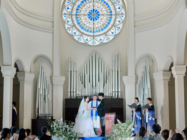 | おすすめ ポイント | ウエディングドレスを輝かせるロイヤルブルーの歴史ある大聖堂。生演奏とゲストの想いが感動的な挙式を創り上げます |