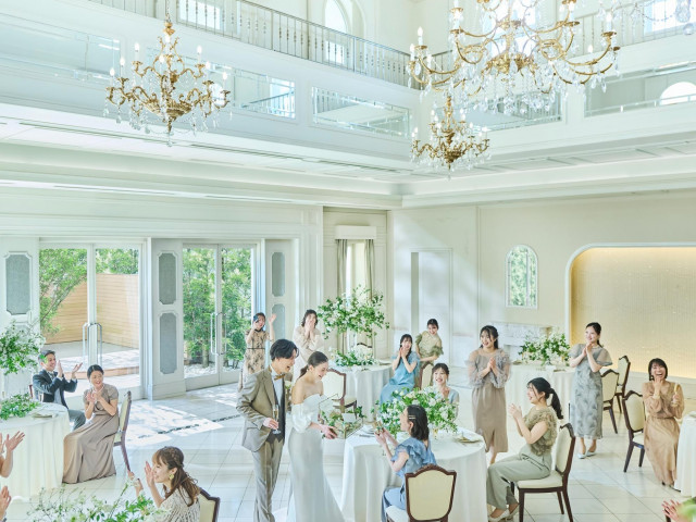 《空×緑を独占★選べる2つのガーデン付プライベート邸宅》◆階段入場の演出も叶う!自然光に囲まれた「サロン・ドゥ・ジャルダン」◆シャンデリアの気品に満たされたラグジュアリー空間「サロン・ドゥ・フルール」