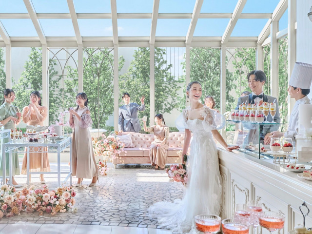 《空×緑を独占★選べる2つのガーデン付プライベート邸宅》◆階段入場の演出も叶う!自然光に囲まれた「サロン・ドゥ・ジャルダン」◆シャンデリアの気品に満たされたラグジュアリー空間「サロン・ドゥ・フルール」