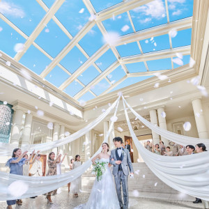 挙式後は全天候型のアトリウムにてフラワーシャワー*天候や気候に左右されない安心の設備*