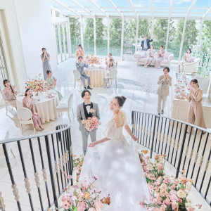 会場隣接のコンサバトリーでは憧れの階段入場も叶う*もちろん室内なので当日まで安心*