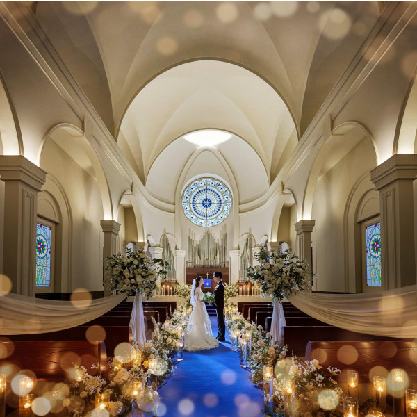 | おすすめ ポイント | ウエディングドレスを輝かせるロイヤルブルーの歴史ある大聖堂。生演奏とゲストの想いが感動的な挙式を創り上げます |