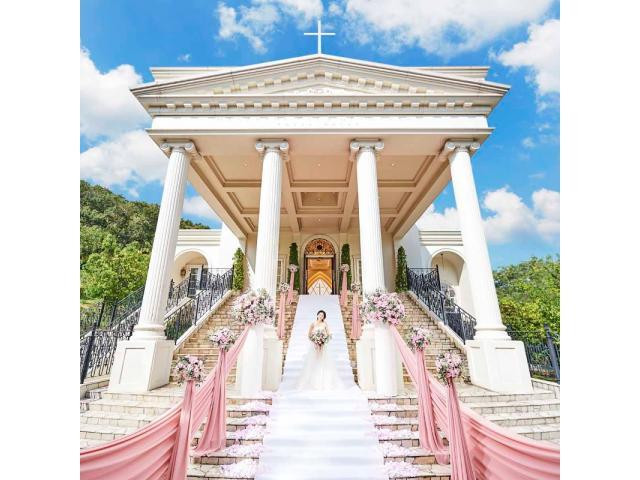 【初見学なら1万円ギフトプレゼント付き♪】◆憧れ大階段はまるで映画のワンシーン◆ドレスが映える『白亜のチャペル』*木漏れ陽溢れる『森のチャペル』で模擬挙式◆ドレスショップ見学・ドレス試着で花嫁体験も♪
