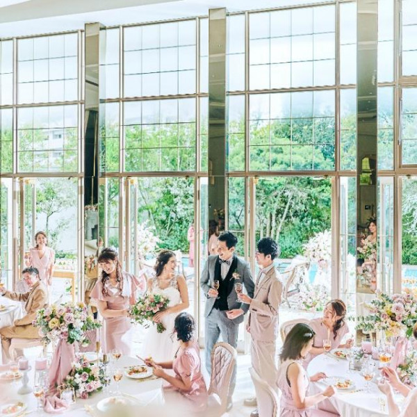 料理特典で、会場こだわりの一品を追加して、ゲストも大満足のおもてなし。ドレス特典を使って運命の1着を見つけよう!自然光が綺麗なシーズン!全天候型で天気や気温の不安なく過ごせるから安心♪