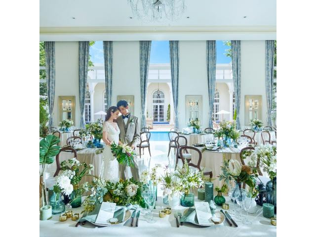 【貸切邸宅をおふたりに合わせてコーディネート】プール付きガーデン隣接の会場も貸切で、自由自在にアレンジ可能!専属のフラワーコーディネーターが季節やテーマなど、おふたりの好みに合わせて様々ご提案◎