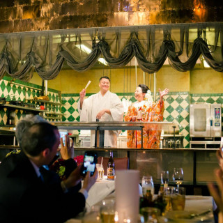 挙式はエレベーターホールをカーテンで覆い、椅子を並べて行います。かなり狭いですが、親族のみの挙式でしたので私たちは問題なかったです。ゲストとの距離も近く、全員の顔がはっきり見えました。ボルドーが多めのレトロなレストランです。元々の作りがオシャレで、天井も高く、オープンキッチンなど華やかです。100名近い参列も可能です。80名くらいが窮屈な感じがなく座れると思います。ウエディングケーキをオリジナルでオーダーしたので少し値上げしました。ムービーを追加したのと、天井に布を飾る装飾をしたので値上がりしました。あとは想定内です。衣装は全て持ち込み、ペーパーアイテムも手作りしました。テーブル装飾も持ち込みし、節約というより自分の理想に近づけました。持ち込み料がかからないのはかなり魅力的です。自分たちのやりたい事を詰め込むことができ、大満足です。特典は、お料理は総額から10%off、ブーケ代、スナップ写真、司会者の一部の値段等をサービスして頂きました。お料理は1番下のランクでも良いくらい美味しそうでした。私たちは色々なメニューを組み合わせ、おりじなるのコースにしました。ゲストの皆様も満足していました。飲み物の種類も多く、レストラン挙式ならではだと思います。渋谷駅から7、8分で着くと思います。マークシティのなかを通ればすぐですが、渋谷に慣れていないと分かりずらいかもしれません。スタッフの皆様がとても仲がいいのが伝わり、フレンドリーで明るく、当日も安心できましたし、控え室でも楽しく過ごすことが出来ました。最初に伺った時から私の想いを汲んでお話して下さり、素敵なチームでした。持ち込み料無料お料理10%off会場の雰囲気とお値段がピッタリだったので。詳細を見る (726文字)