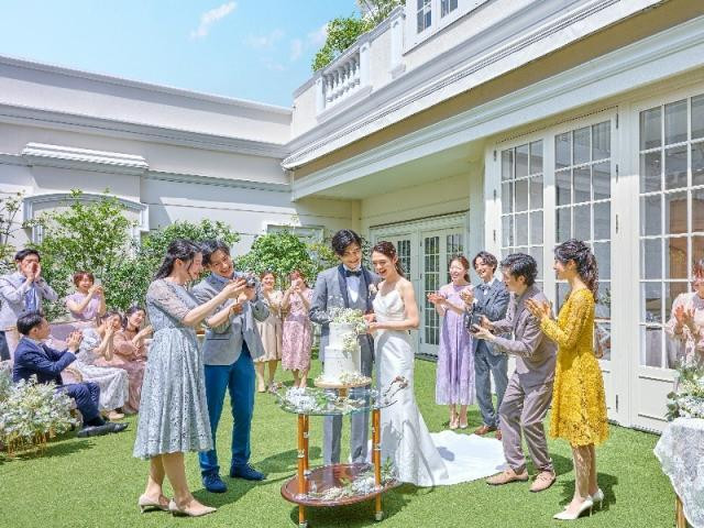 | ガーデン演出 | 有りビルなどが一切見えない青空と緑豊かなガーデンを使って様々な演出が可能。貸切りだからこそ進行も自由に組み換え、飾り付けも自由にできる。写真スポットを作ればゲストと記念写真も盛り上がる! |