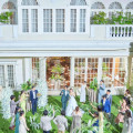 まるで海外のような世界観の中で叶える憧れのガーデン挙式×アットホームパーティー。挙式後にはガーデンでの立食でのカジュアルなウェルカムパーティー付き。雨天時のチャペル挙式への変更も無料対応補償付き。