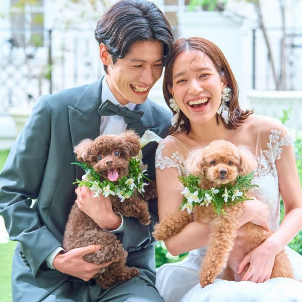 ガーデンやチャペルで愛犬と一緒に楽しめる!新婦とおそろいドレスにすれば、一生の思い出になるはず。