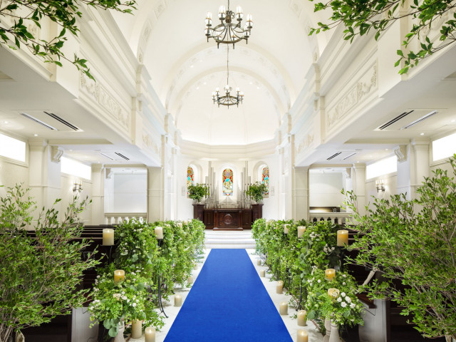 厳かな大聖堂チャペル【アスピラシオン教会】と木のぬくもりを感じる森のチャペル【ラベイユ】。アラモードパレ自慢のチャペルや大階段をおふたりで歩いて見て!当日のイメージを掴もう