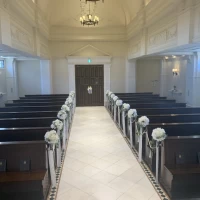 大聖堂は、オプションで当日赤絨毯を敷くことも可能だそうです。白を基調とした正統派チャペルです。