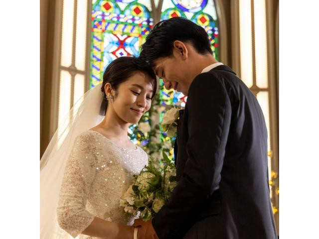 【光溢れるチャペル】美しいステンドグラスが印象的なチャペル。入場の前には親御様へ感謝を伝えるサプライズ演出も大人気!