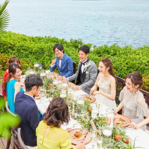 挙式後はゲストとアットホームなパーティを