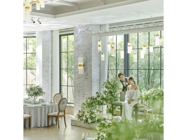 表参道という好立地で、独立型の邸宅を一棟ごと貸切に。白を基調としたパーティー会場は、明るい光がたっぷり差し込む大きな窓も。クラシック×ハイセンスの憧れウエディングが叶います。