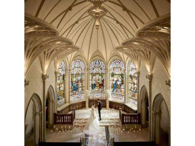 【エリア最大級!本格ステンドグラス】大聖堂は天井高10m・バージンロード20mの圧巻!フェアでは聖歌隊とパイプオルガンの生演奏&大階段のセレモニー体験あり!海外挙式のような感動と憧れが叶う夢の時間を♪