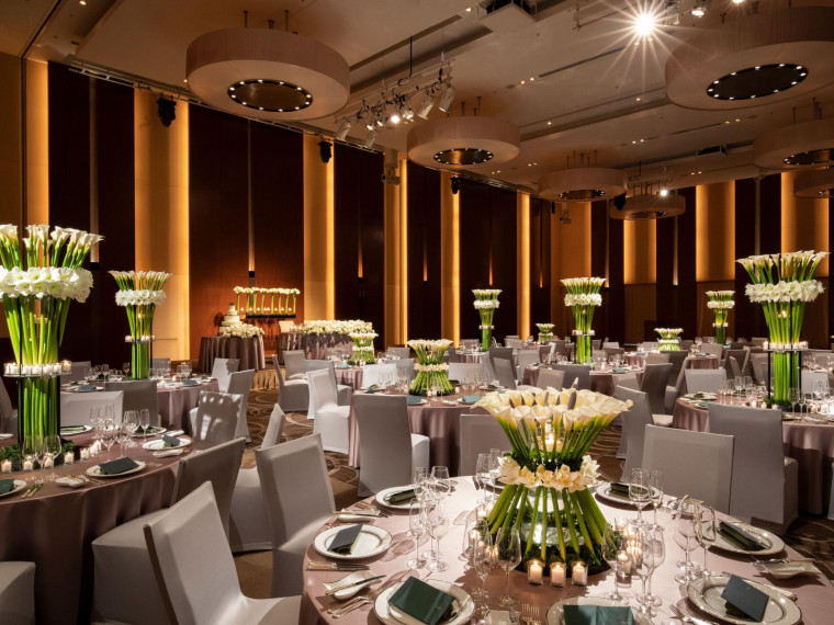 コンラッド東京を象徴する美しさと品格に満ちた天井高7.2mの披露宴会場「風波」。