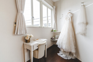 アンジェでは専用のブライズルームにてお支度を行います。前撮りにてリハーサルを行い、安心して迎えられた挙式当日は他のゲストにも会うことなく、ゆったり子供の頃を想い出しながら入場前の時間をお過ごし出来ます。