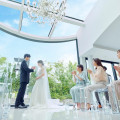 一面ガラス張りのアトリウムチャペルや、風が心地よいパーティ会場。少人数でも貸切だからこそ叶うアットホームで特別な日*家族だけの心温まるひとときをお過ごしください。