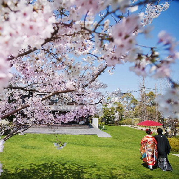 新緑の青葉など、樫野倶楽部の広大なガーデンが1年で一番美しく華やぐ春の季節。緑たっぷりの貸切ガーデンはオープンエアな挙式会場として人気の他、披露宴では実演料理の演出も可能。良い日柄は早い者勝ち!