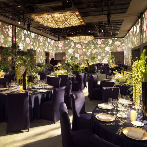 おすすめ ポイント | グランドボールルームでは、壁一面360度の最新鋭の映像システムを完備。思い通りの映像と光と音で、シックにもカジュアルにもゴージャスにも、お二人のオリジナリティあふれる演出を可能にします。