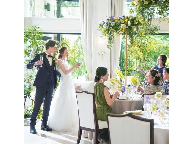 【1日貸切!光と緑があふれるパーティ会場】大きな窓から差し込む光と緑に包まれ、ゲストもリラックス◆1日貸切だから時間も空間も自由♪◆ムービングルーフ付きの全天候型ガーデン ≪1件目見学で会場料優待!≫