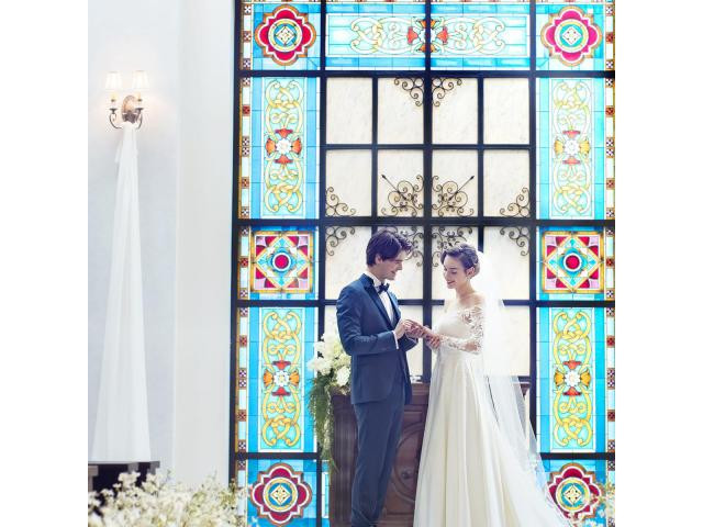 【先着順でご案内】花嫁が映えるサムシングブルーのステンドグラスが輝くチャペル挙式を50%優待!