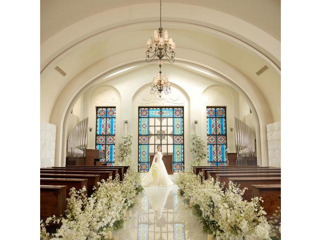 【先着順でご案内】花嫁が映えるサムシングブルーのステンドグラスが輝くチャペル挙式50%優待!