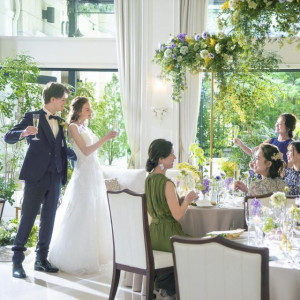 チャペルだけでなく、光・風・緑を感じるナチュラルなガーデン挙式も選択OK。ムービングルーフ付きの全天候型ガーデンだから季節や天候も安心。プライベートガーデンでふたりらしい時間を過ごせ、自然体で楽しめる開放的なセレモニーが叶います。