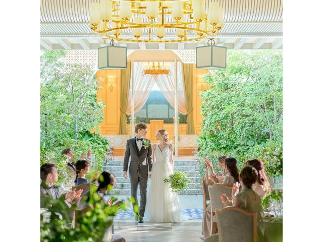 【ガーデンテラス併設&オープンキッチン付の会場】◆青空と緑が美しいガーデン付のパーティー会場♪チャペルを背に叶える階段入場も人気!◆見学当日は、オープンキッチン演出や、パーティー入場など体験可能◎