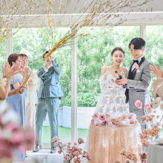大切な人々に囲まれて永遠の愛を誓う。フラワーシャワーの演出で、祝福に包まれる感動的な瞬間を