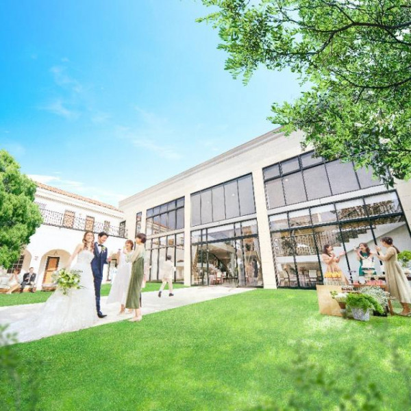 プライベートガーデンバンケットの窓を開けると、青空の下、爽やかな風を感じながらリゾートのようにくつろげるプライベートガーデンを完備。
