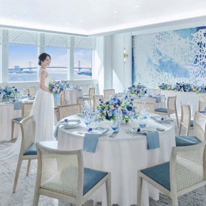2つの披露宴会場の大きな窓からは都心ならではのベイエリアを望む。