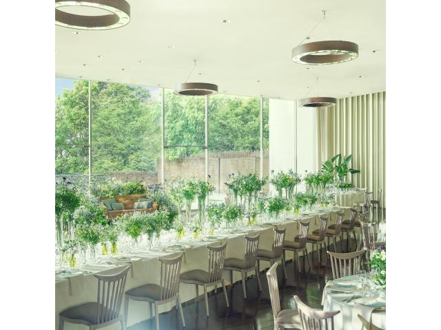 【大人数から少人数まで対応可能】和洋に対応!自然溢れるナチュラルな雰囲気の会場だからこそ、おふたりのコーディネートのイメージにぴったり!大自然の緑の中で叶える、テラス付き少人数用のスペースもご用意◎