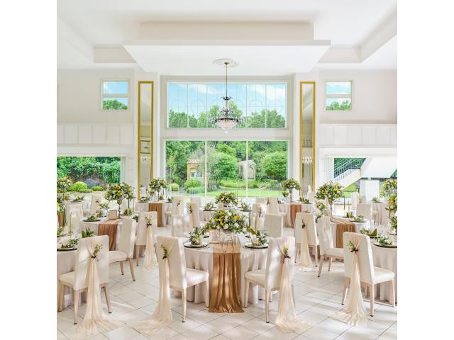 | ガーデン演出 | 有り人気のガーデンもリニューアル!ガーデンカウンター登場で更にお庭での演出も楽しめる!広大なガーデンで、夜空を彩る花火や愛犬とのご入場も☆ |