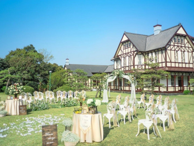 期間限定!大牟田市重要文化財である歴史的建物で、季節感のある美しい庭園やクラシックモダンが醸す披露宴会場の見学& 360 プロジェクションマッピング体験付無料試食をご用意。