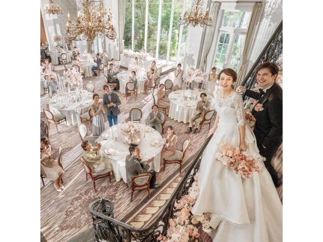 【心斎橋・本町駅徒歩4分の好立地】大阪最大級のステンドグラスの大聖堂×緑溢れる邸宅を貸切に。花嫁姿が美しく輝くために設計された当館の全館ツアーにご案内。ご予算や空き状況の相談もお気軽に♪