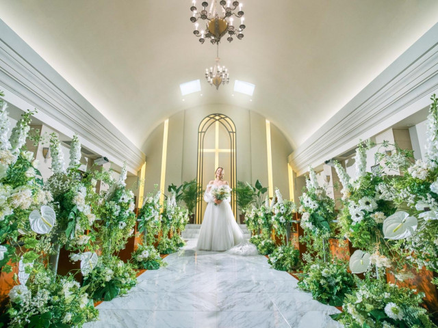 | おすすめ ポイント | 大理石のバージンロードとドーム型の高い天井。響き渡る生演奏で挙式の雰囲気は優雅で厳かに。チャペルの中で和装を着るのもいいかも。 |