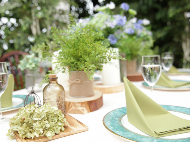 | ガーデン演出 | 有り緑豊かなガーデンでは様々なオリジナル演出が可能。フラワーシャワーやバルーンリリース等の人気演出はもちろんのこと、お庭でウェディングケーキ入刀セレモニーなども叶う |