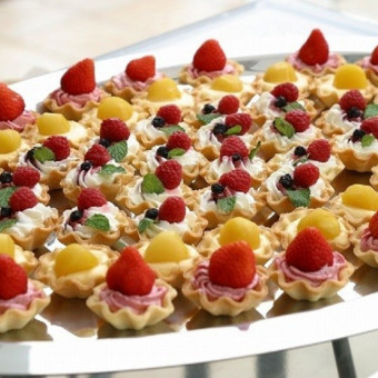 フランボワーズのムース バニラアイスクリ-ムとフルーツ添え