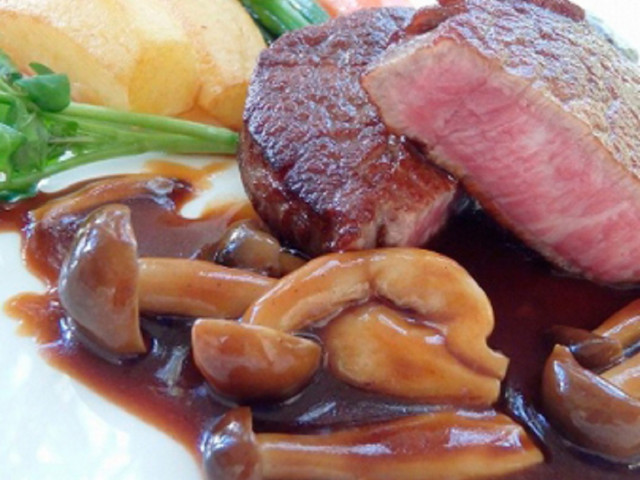 緑に包まれたガーデンを眺めながら、有名ホテル出身シェフが腕を奮う国産牛フルコース料理を味わって