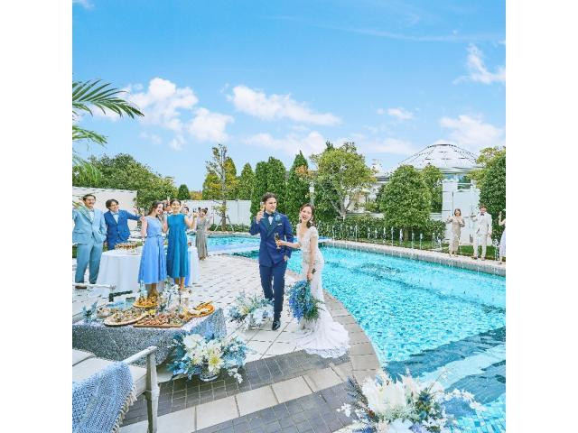 | ガーデン演出 | 有りアートグレイスオリジナル!プールを使ったバルーンリリースや、ガーデンでの花火演出も大人気! |