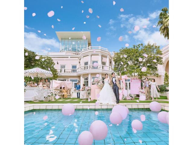 | ガーデン演出 | 有りアートグレイスオリジナル!プールを使ったバルーンリリースや、ガーデンでの花火演出も大人気! |
