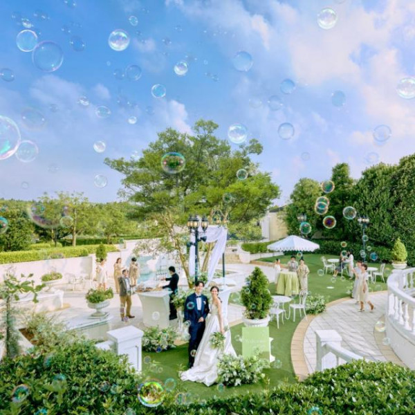 | ガーデン演出 | 有りアートグレイスオリジナル!プールを使ったバルーンリリースや、ガーデンでの花火演出も大人気! |