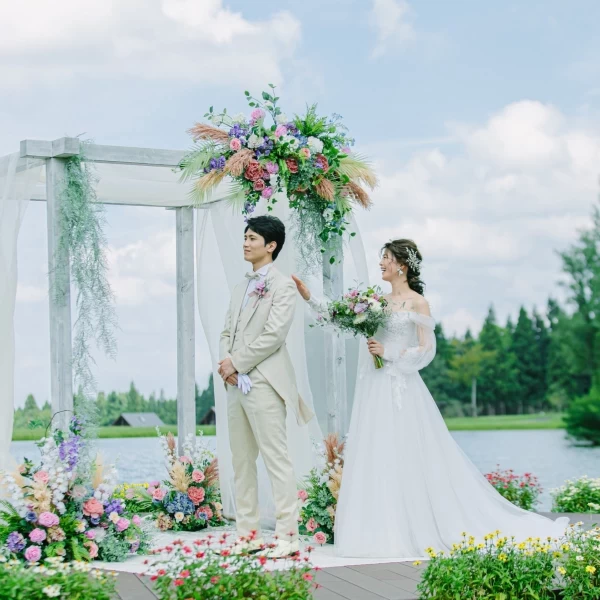 | ガーデン演出 | 有りレイクサイドチャペルでは解放感あふれるガーデンウエディングが叶う |